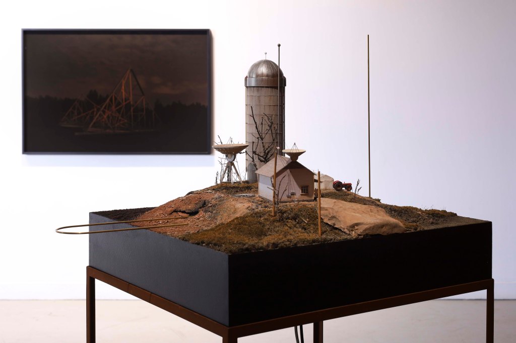 Premier projet commun des artistes Gabriel Fortin et Mariane Tremblay, État Plasma est une installation rétrofuturiste multiforme cultivant l’aura de mystère qui entoure encore aujourd’hui une mission secrète menée par le Pentagone dans les années 1980 à Sainte-Hedwidge au Saguenay-Lac-Saint-Jean. Des théories du complot ont émergé des suites de la création présumée d’un énorme trou dans l’ionosphère au-dessus de la région, dans le but d’améliorer une étude sur la transmission de fréquences.
