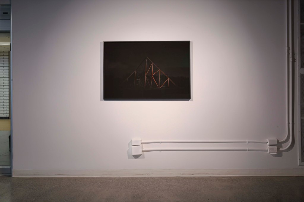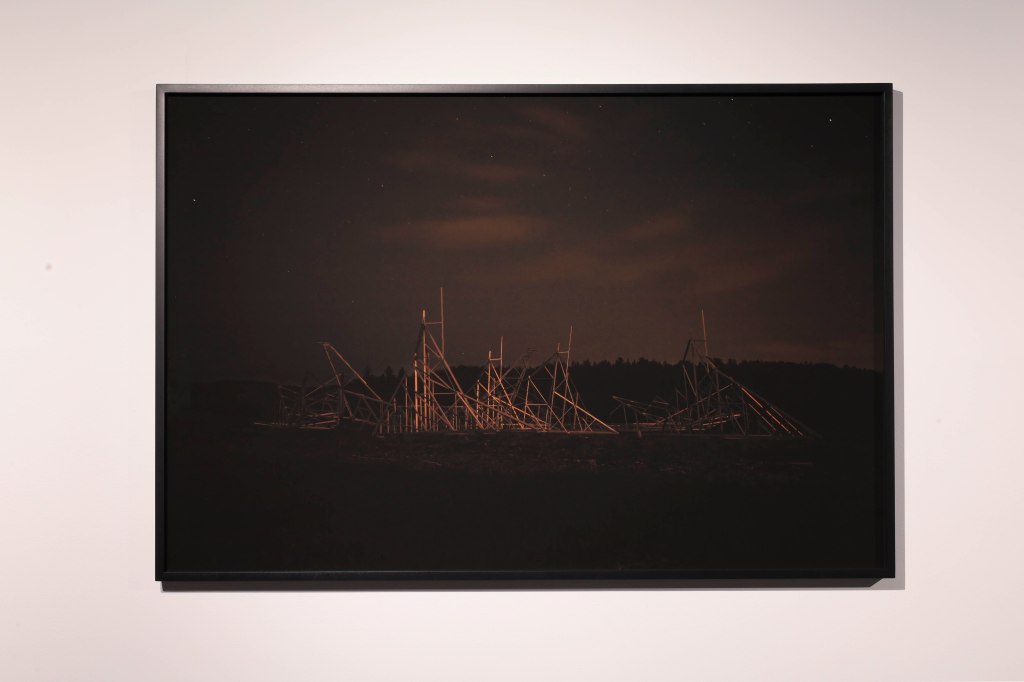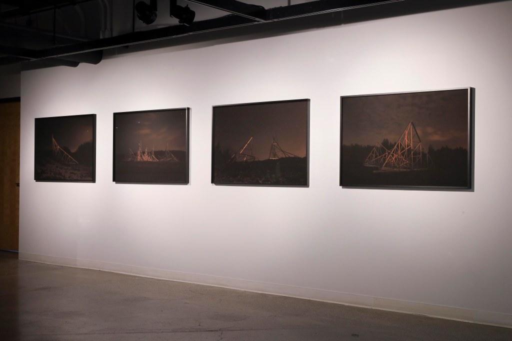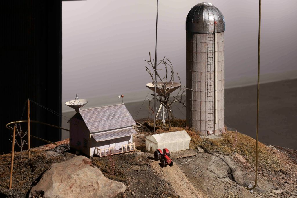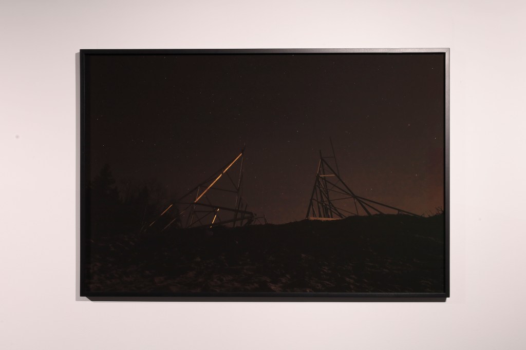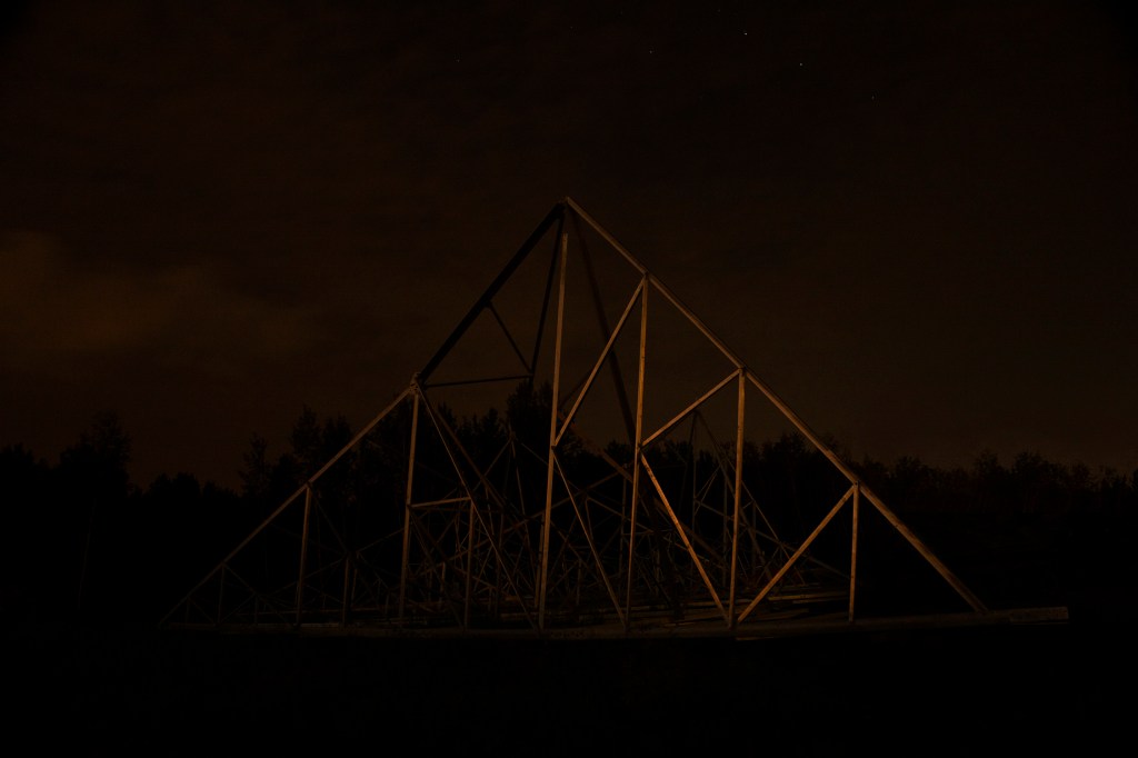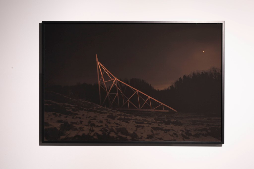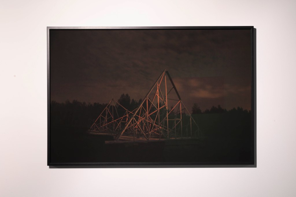« Des antennes installées près d’une maison de campagne à Sainte-Hedwidge-de-Roberval captaient les émissions d’EBF [extrême basse fréquence et ultra-basse fréquence].[1] » Les artistes ont alors imaginé cette expérience dissimulée sur une ferme banalisée, capté des structures étranges érigées dans le paysage et enquêté sur les lieux de Sainte-Hedwidge. Les deux univers de Gabriel et Mariane se rencontrent ici dans une curiosité commune pour l’intangible et l’inexpliqué, qui résident dans l’expression « c’est arrivé près de chez vous ».