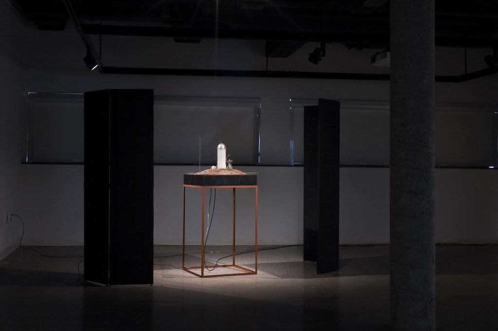 Premier projet commun des artistes Gabriel Fortin et Mariane Tremblay, État Plasma prend la forme d’une installation rétrofuturiste cultivant l’aura de mystère qui entoure encore aujourd’hui une mission secrète américaine menée dans les années 1980 à Sainte-Hedwidge au Saguenay-Lac-Saint-Jean. Des théories du complot ont émergé des suites de la présumée création par une navette d’un énorme trou dans l’ionosphère de la région, dans le but d’améliorer une étude sur la transmission de fréquences. Selon certaines croyances, cette mission secrète aurait eu pour objectif secret de contrôler l’esprit humain et été à l’origine d’une hausse de cancers du cerveau dans la région, due à cet énorme trou dans le ciel directement au-dessus de nos têtes.